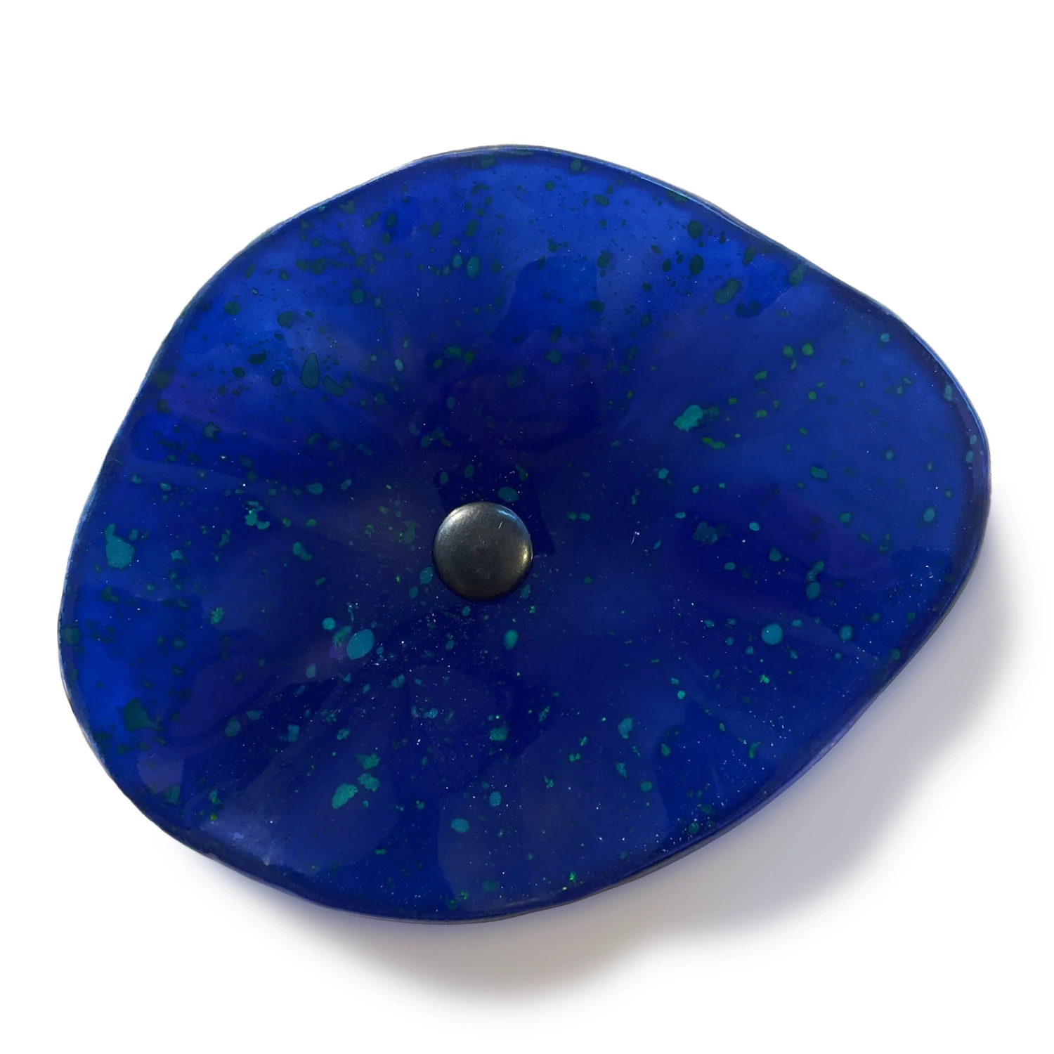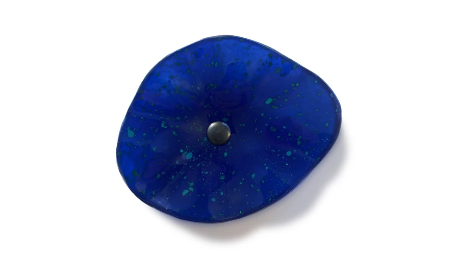 A mély sötétkék színt tökéletesen kontrasztba állítják a világoskék pöttyök ezen a lenyűgöző ovális üvegvirágon. Az olvasztott üveg technikával készült konstrukció egyedi formát garantál. A 43 cm-es acél száron tartós kiállításra tervezték, színeit magas UV-, víz- és időjárásállóság védi.