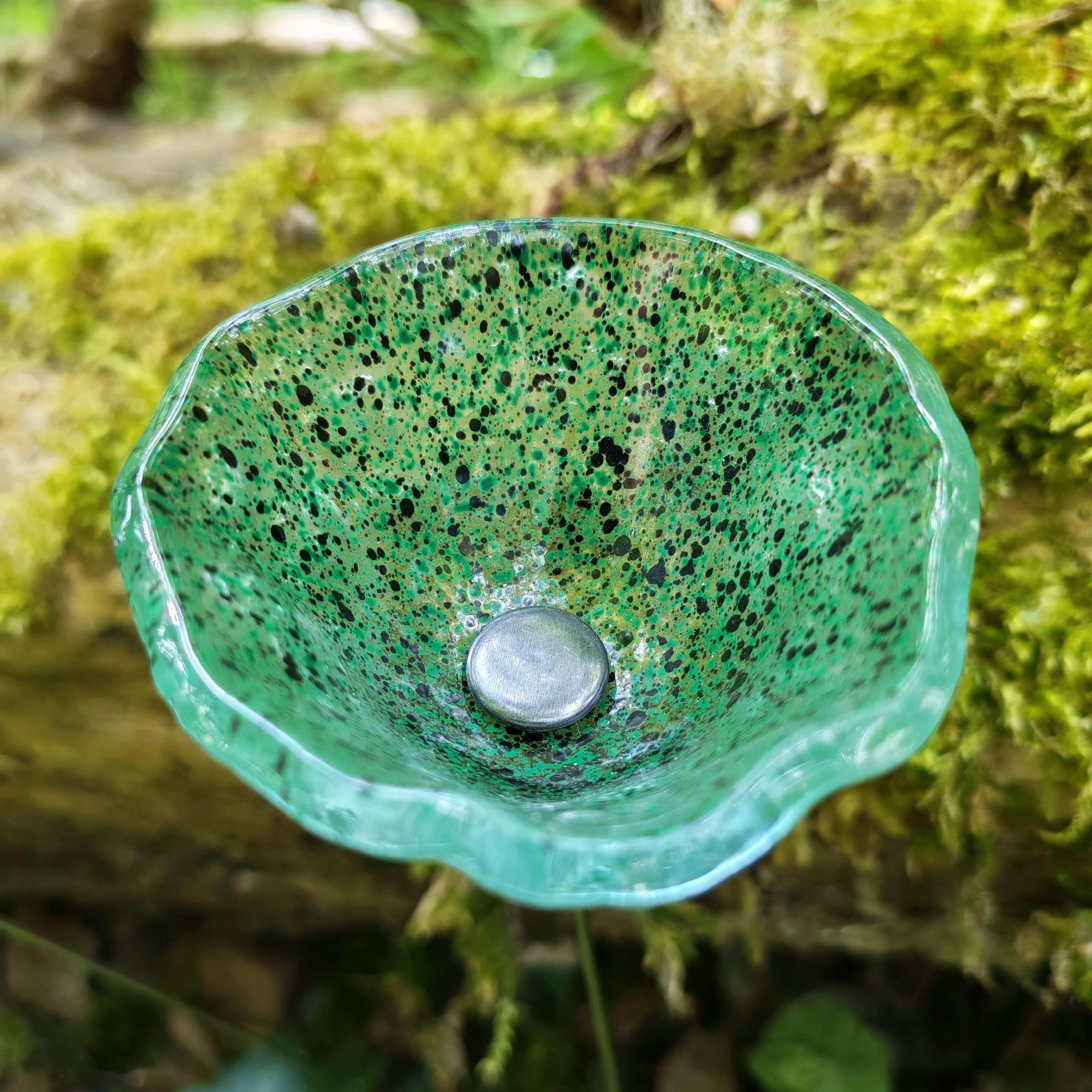 Közepes méretű üveg kála virág kültérre transzparens, zöld, fekete színben 43 cm -es rozsdamentes acélszáron