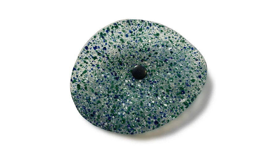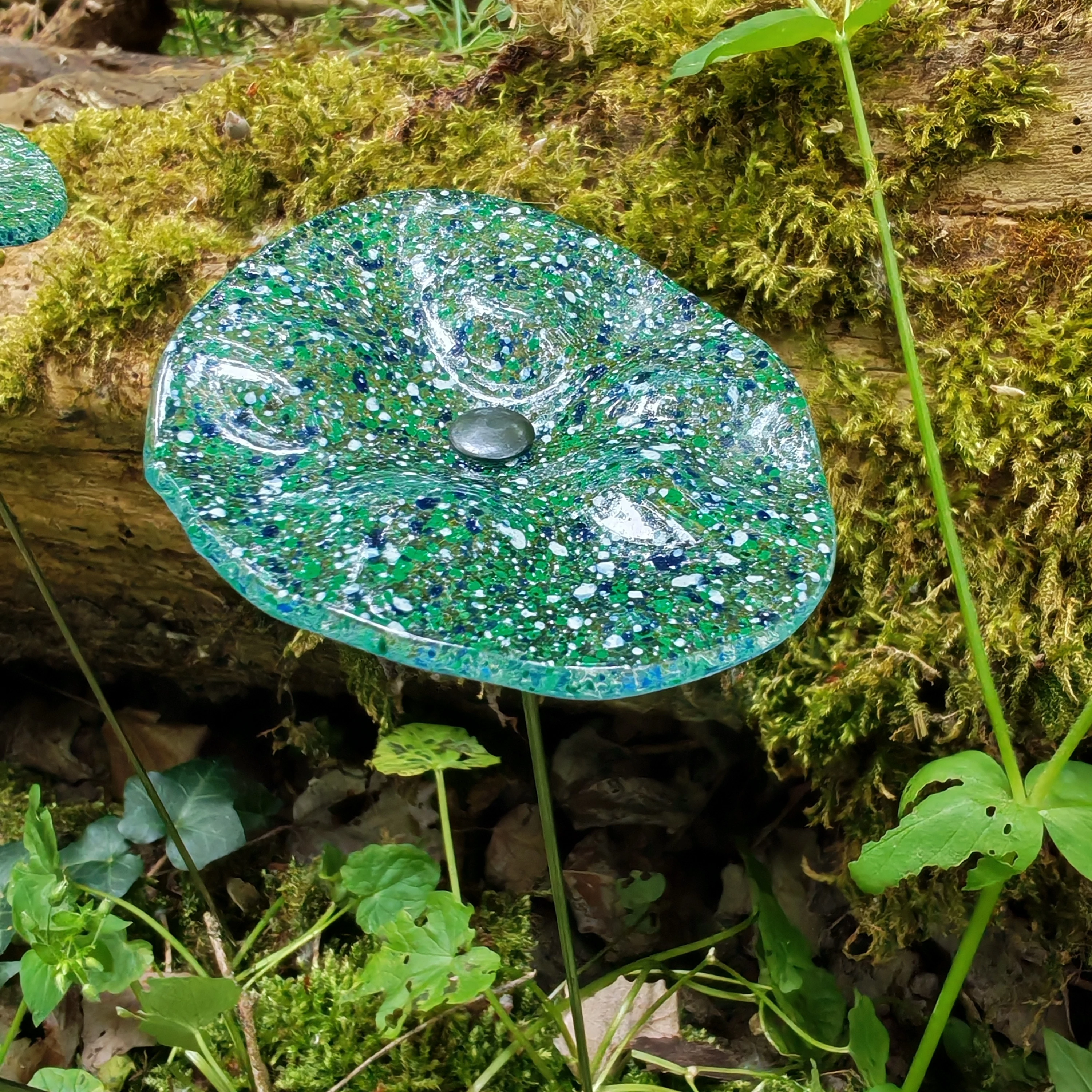 Ovális virág, transzparens alapon zöld-sötétkék pöttyökkel 43 cm-es rozsdamentes acélszáron