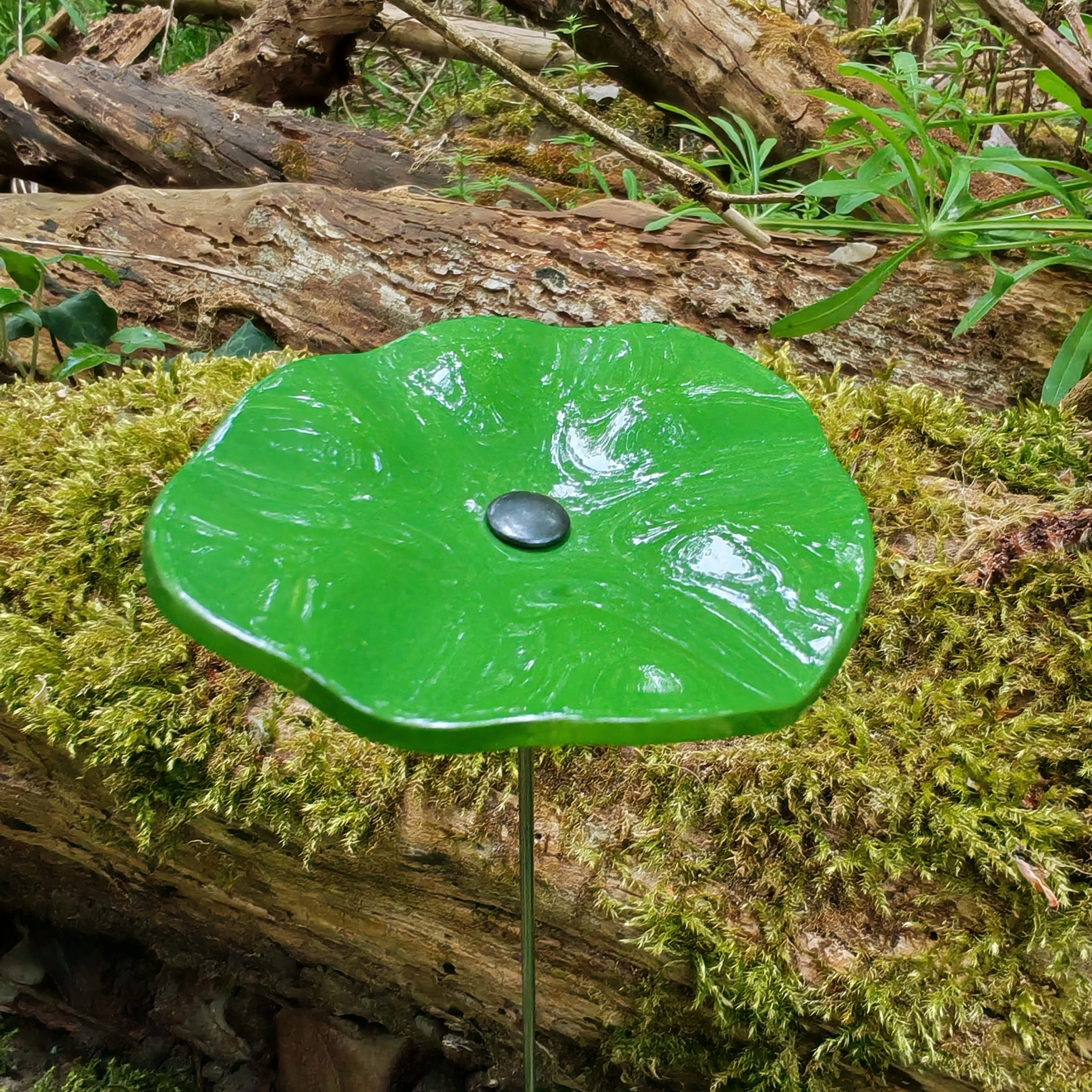 Ez a gyönyörű ovális üvegvirág almazöld színével finom eleganciát sugároz. Az olvasztott üveg technikával készült egyedi formája időtlen kerti műalkotássá teszi. Egy 43 cm-es acél szárra szerelve kültéri használatra tervezték, kiváló UV-, víz- és időjárásállósággal, hogy élénk megjelenését az elemekkel szemben is megőrizze.