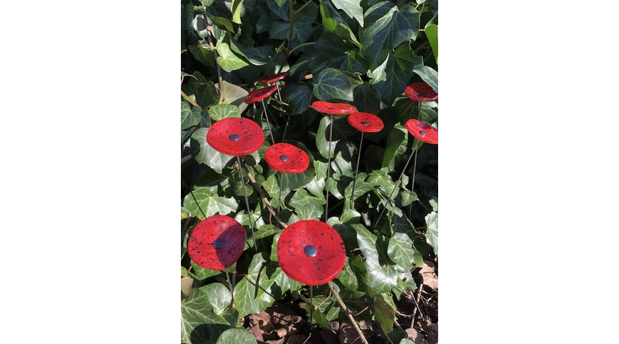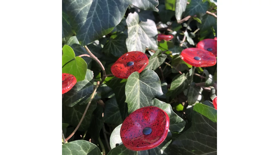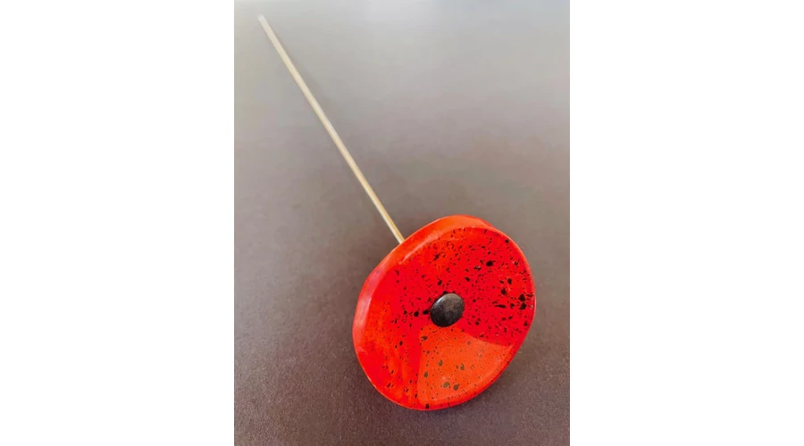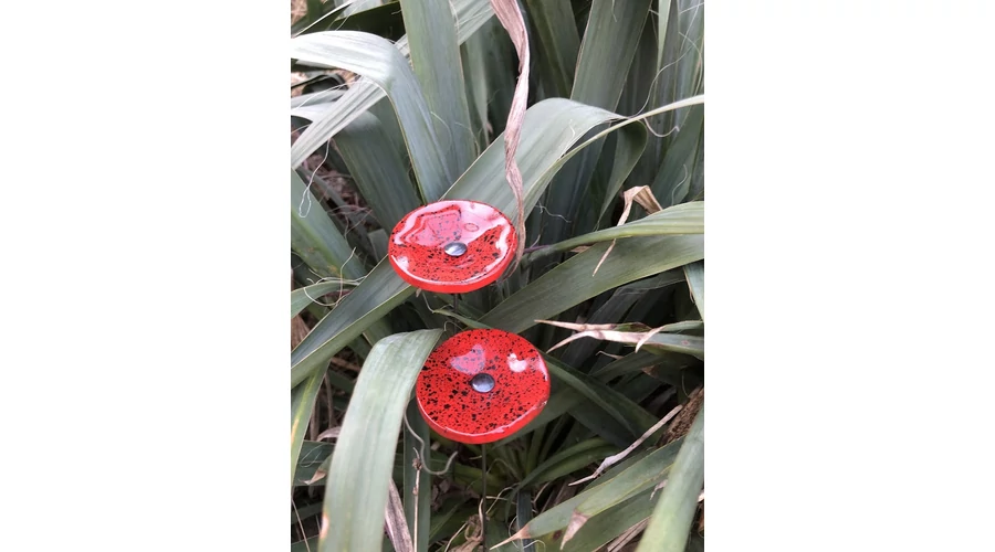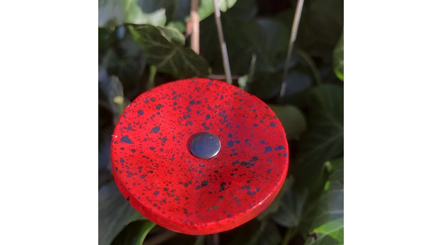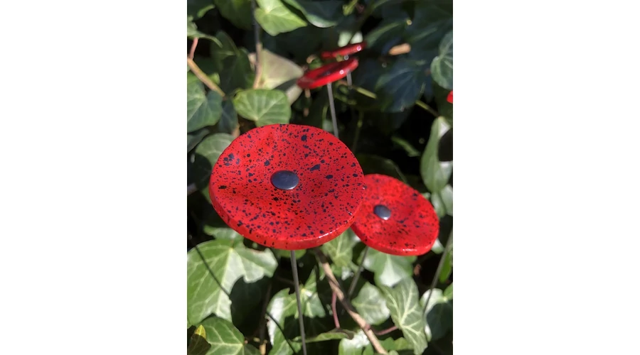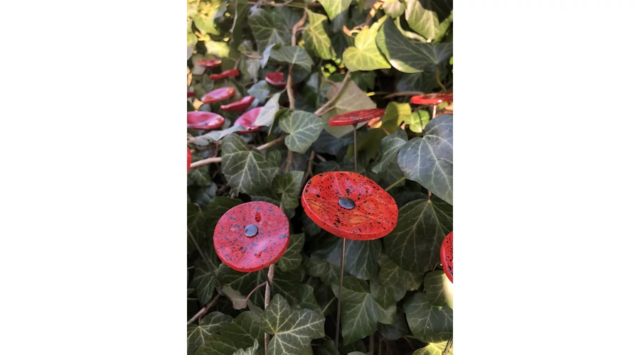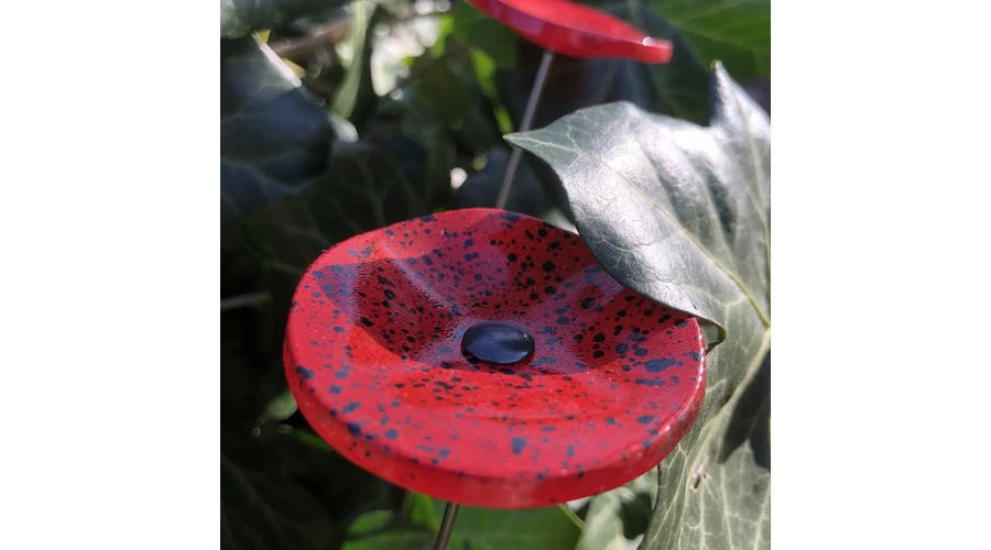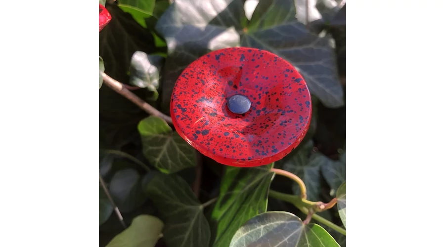 Kis méretű kerek üveg virág kültérre piros- fekete színben 43 cm -es rozsdamentes acélszáron. Vidám és színes virágjaink télen-nyáron színesítik a kertedet vagy az erkélyedet. Harmonizálnak az élő növényekkel és virágokkal. Üvegvirág átmérője: 4,5 cm
