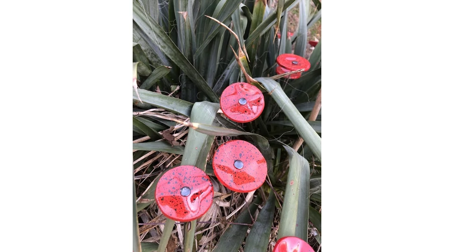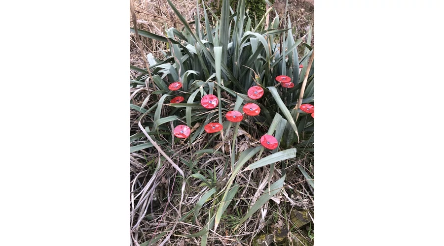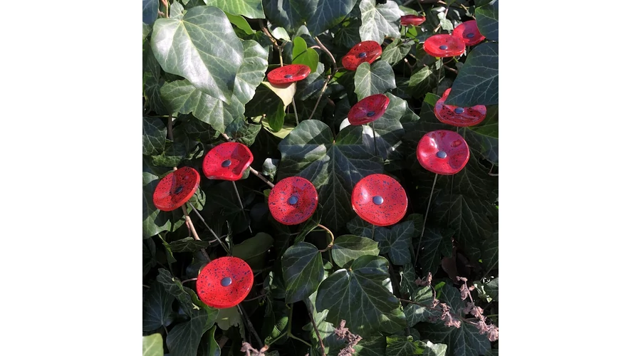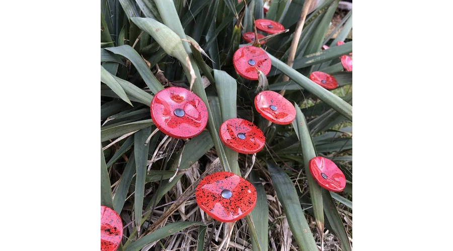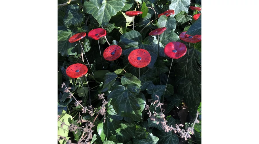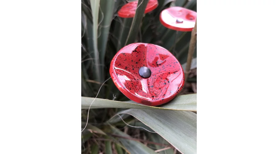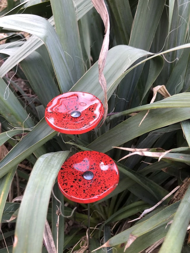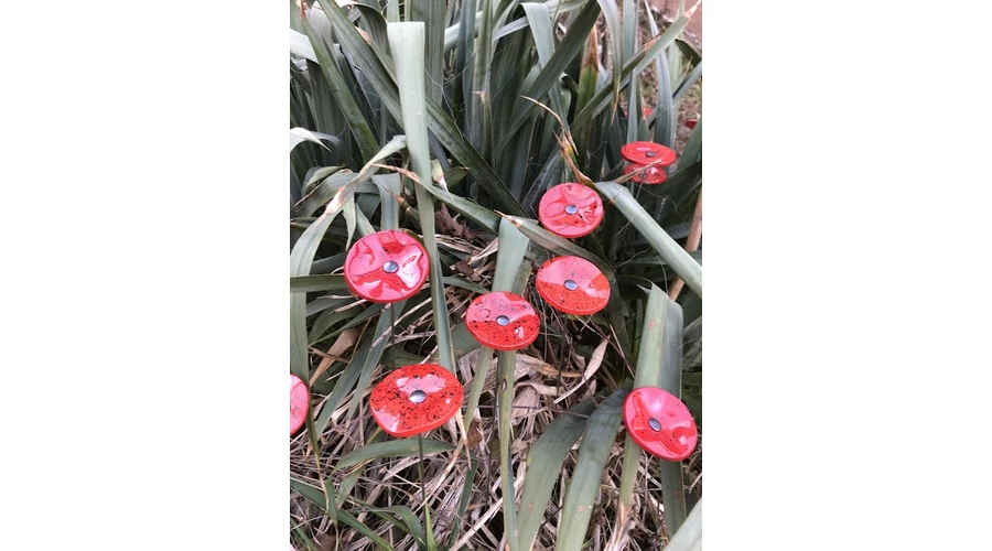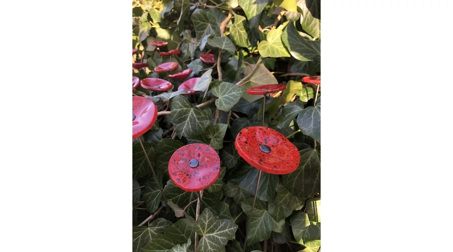 Kis méretű kerek üveg virág kültérre piros- fekete színben 43 cm -es rozsdamentes acélszáron. Vidám és színes virágjaink télen-nyáron színesítik a kertedet vagy az erkélyedet. Harmonizálnak az élő növényekkel és virágokkal. Üvegvirág átmérője: 4,5 cm