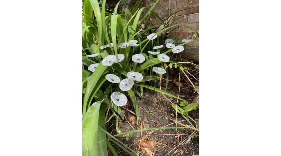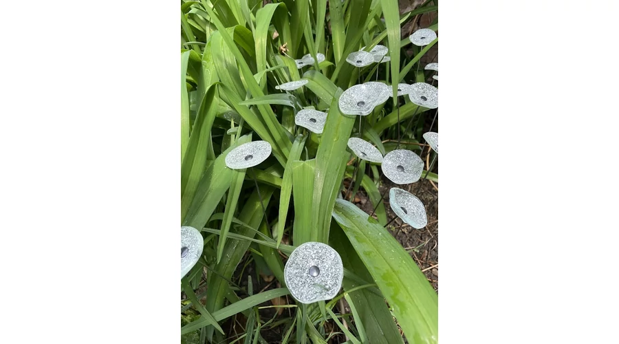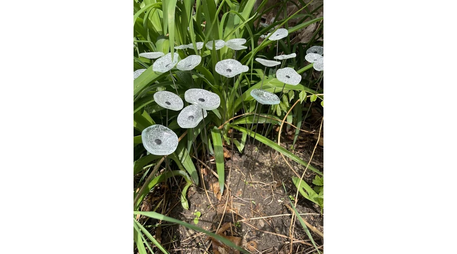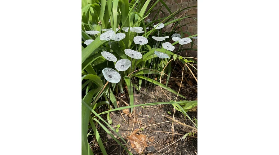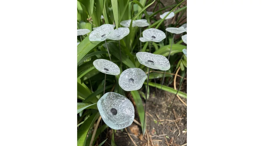 Kis méretű kerek üveg virág kültérre transzparens- fehér színben 43 cm -es rozsdamentes acélszáron. Vidám és színes virágjaink télen-nyáron színesítik a kertedet vagy az erkélyedet. Harmonizálnak az élő növényekkel és virágokkal. Üvegvirág átmérője: 4,5 cm