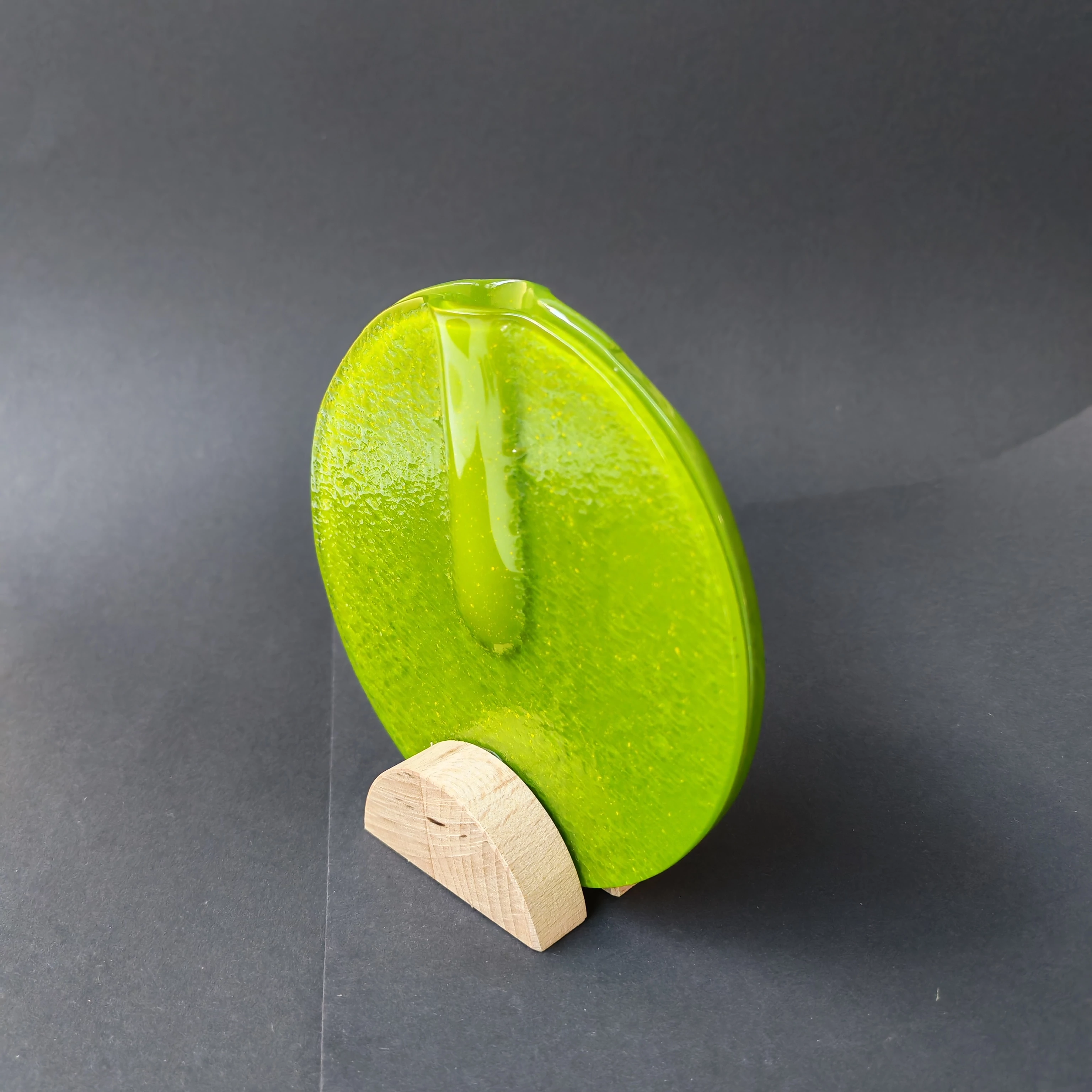 Mutassa be virágait ebben a kicsi, tökéletesen kerek vázában, tömör bükkfa talppal. Az üveg élénk színe azonnal feldob bármilyen teret, kiemelve annak letisztult, egyedi formáját.