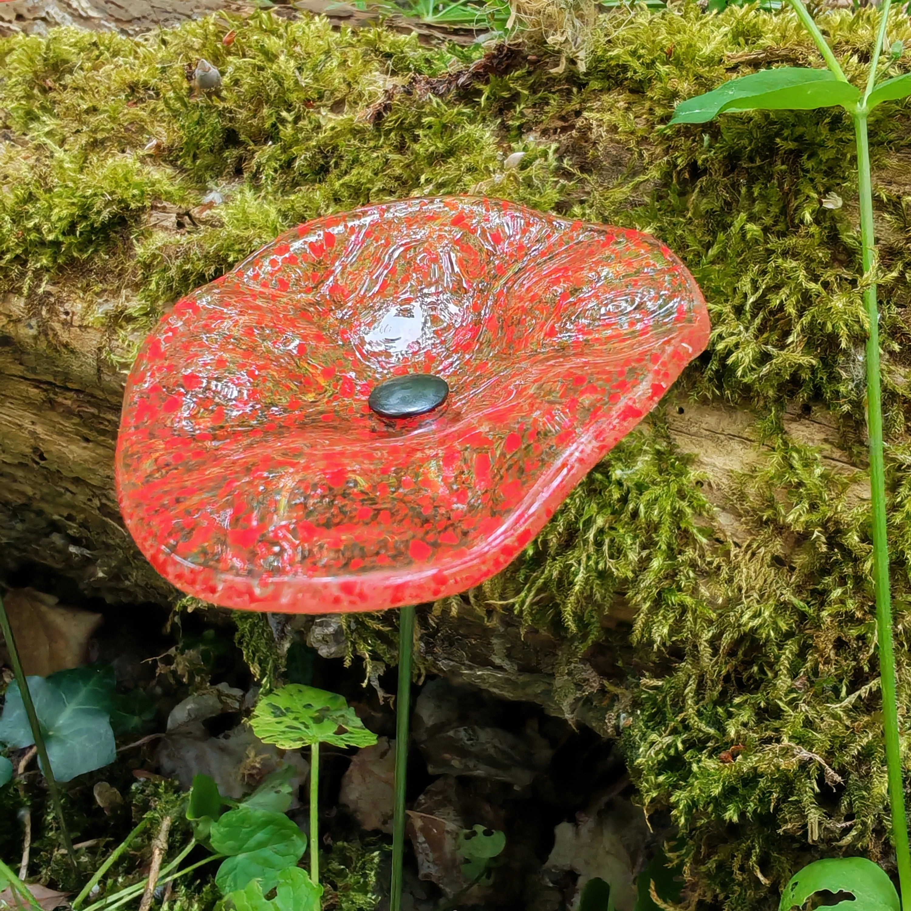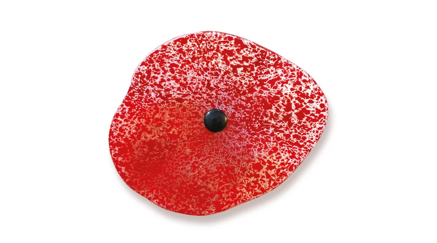 Élénk vörös árnyalatú, egyedi ovális formájú, átlátszó üveg, olvasztott üveg technikával. Ez a darab minden évszakban gyönyörű megjelenést ígér megbízható UV-, víz- és időjárásállóságának köszönhetően.