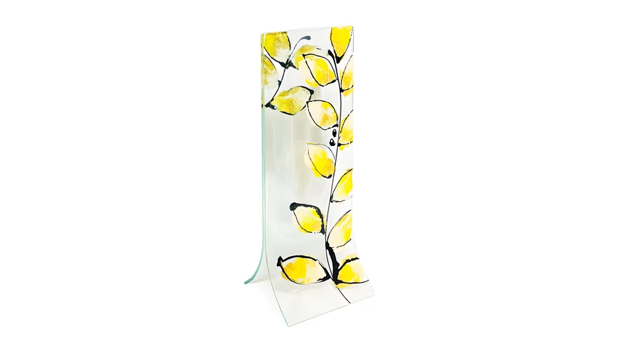 Transzparens alapú sárga-arany leveles váza 14x36 cm-es méretben