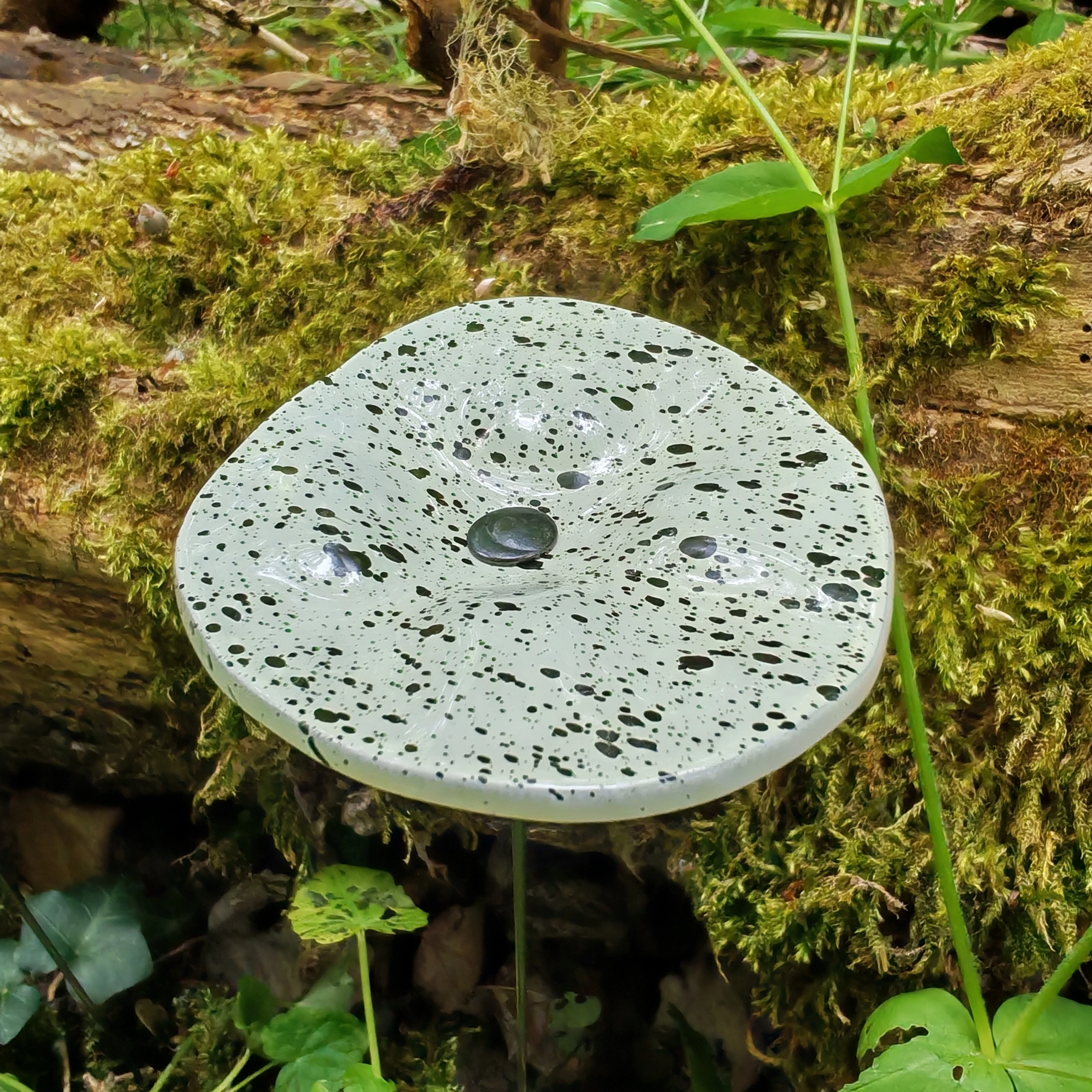Vigyen modern külsőt kertjébe ezzel a fehér alapú ovális üvegvirággal, mely merész fekete pöttyökkel díszített. A speciális olvasztott üveg technika biztosítja a termék egyedi, áramló formáját és kültéri megbízhatóságát. Kiemelkedő UV-, víz- és időjárásállóságot kínál, megőrzi színei intenzitását, miközben szilárdan áll 43 cm-es acél szárán.