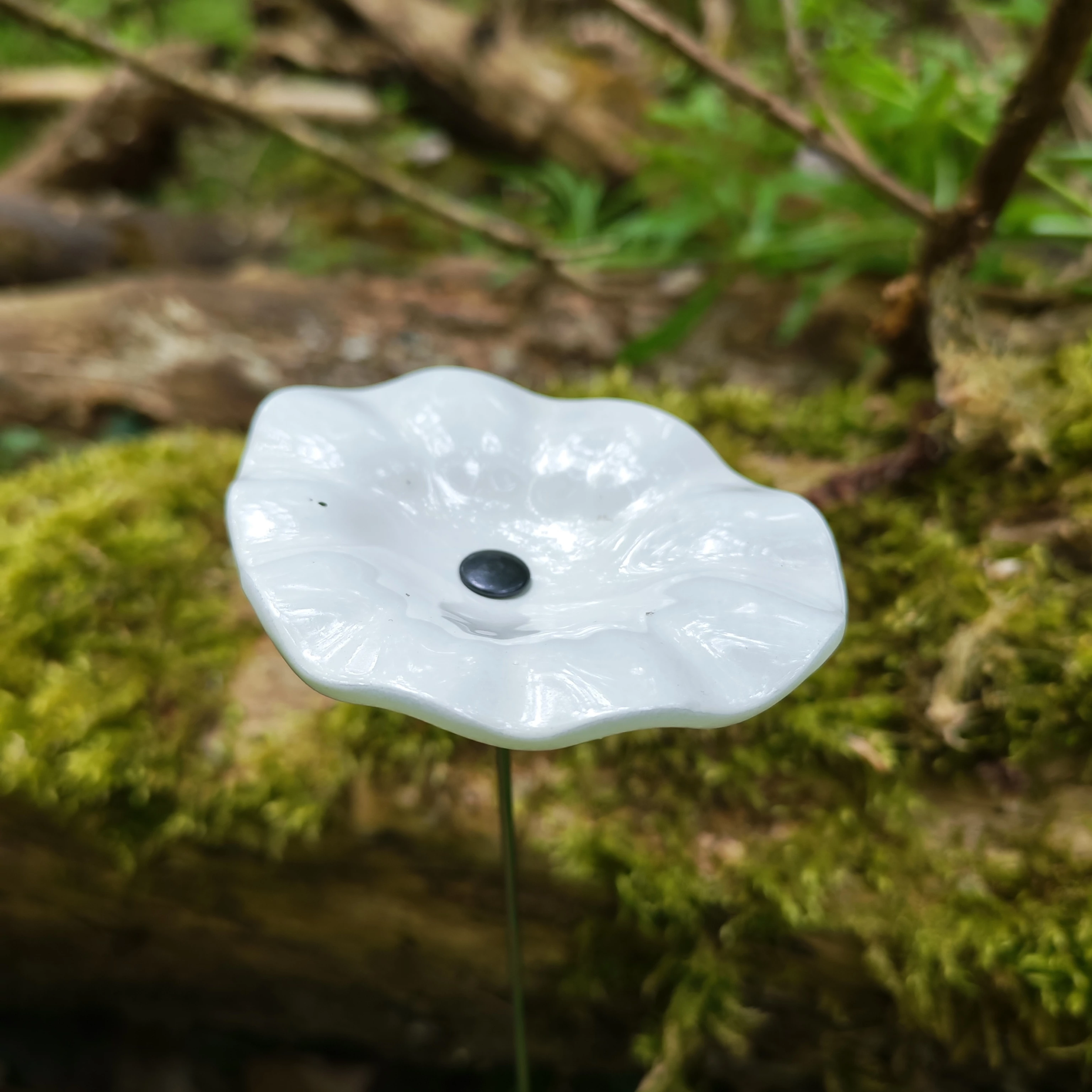 Az egyszerűség és a kifinomultság találkozása ebben a tiszta fehér ovális üvegvirágban. Az olvasztott üveg technika jellegzetes, enyhén ívelt formát kölcsönöz neki. Tartós kültéri kiállításra tervezték, 43 cm-es acél száron, anyagai magas UV-, víz- és időjárásállóságot garantálnak, így tartósan elegáns kiegészítője lehet a kertednek.